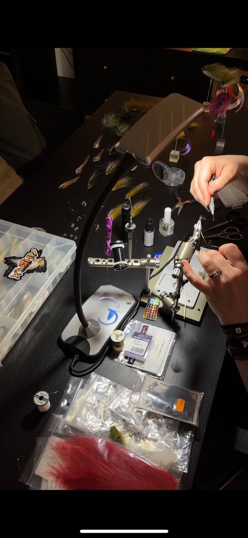Live-Fliegenbinden mit Daniela Misteli: Die renommierte Fliegenbinderin präsentierte vor Ort ihre Kunst des Fliegen- und Streamerbinden und teilte wertvolle Tipps mit den Anwesenden.